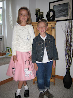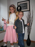 Today is the annual Sock Hop at my kid's school. They just love dressing up in their 50's attire! I had made my daughter's poodle skirt a few years ago and it still fits! My son thinks he is pretty cool in his jean jacket, slicked hair, and rolled up jeans. Too fun! There will be a dance tonight, with a cake walk, games, cotton candy, and good pics!